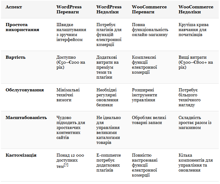 При виборі між WordPress і WooCommerce важливо зважити плюси та обмеження кожної платформи. Обидві пропонують потужні інструменти, але їхня доцільність залежить від конкретних потреб вашого бізнесу.